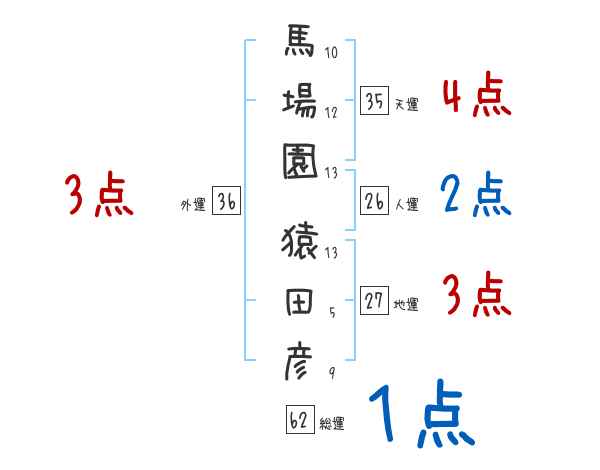 馬場園猿田彦さんの画数の鑑定結果