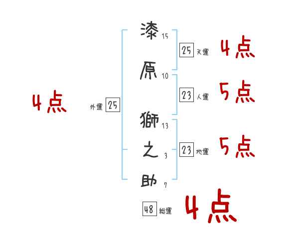 天運![]() | 漆原獅之助さんの天運は25画の4つ星!個性があり才能があふれる。強運の持ち主で発展する。 家系が持つ宿命的な運勢を表します。祖先から受け継いだ苗字ですので自分の力が及びません。家柄を象徴します。 |