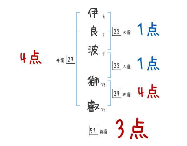 伊良波獅叡さんの画数の鑑定結果