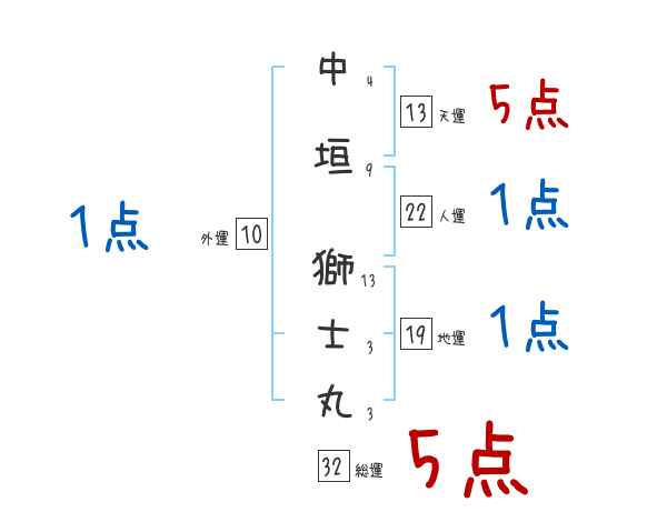 天運![]() | 中垣獅士丸さんの天運は13画の5つ星!才能に恵まれ人気がある。名声を手に入れる。円満な人生。 家系が持つ宿命的な運勢を表します。祖先から受け継いだ苗字ですので自分の力が及びません。家柄を象徴します。 |