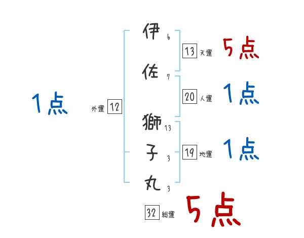 総運![]() | 伊佐獅子丸さんの総運は32画の5つ星!柔軟性があり成功する。チャンスが多く金運が良い。 あなたの人生を表す1番重要な運勢です。生涯を通じて影響する総合運となり、主に50歳以降の晩年期に影響を及ぼします。 |