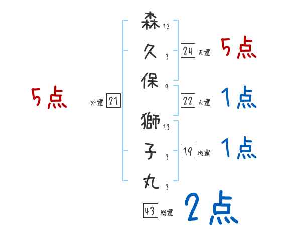 森久保獅子丸さんの画数の鑑定結果