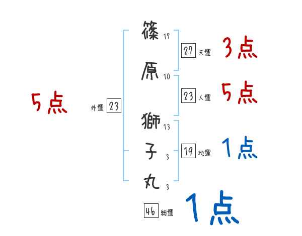外運![]() | 篠原獅子丸さんの外運は23画の5つ星!想像力に優れ活力がある。一代で成功し名誉を手に入れる。 生活面を象徴する運勢です。外部から受ける影響力を表し、結婚運、家庭運や職場、環境への順応性を表します。 |