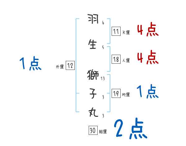 羽生獅子丸さんの画数の鑑定結果