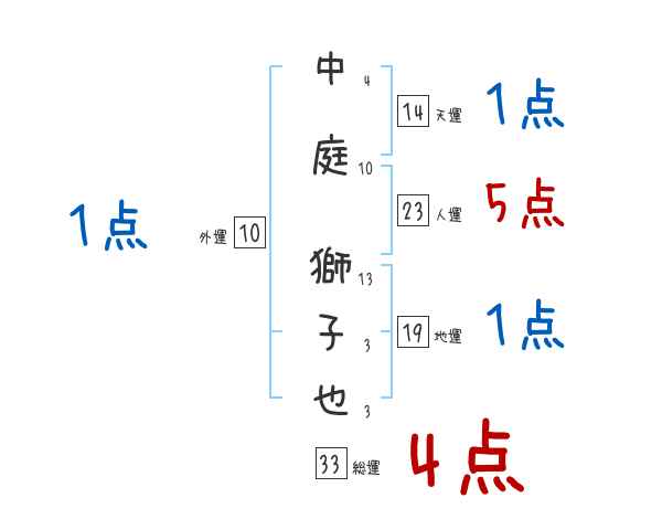 中庭獅子也さんの画数の鑑定結果