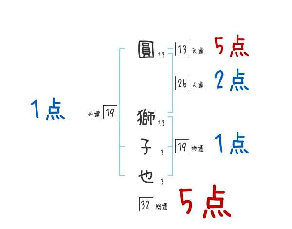 圓獅子也さんの画数の鑑定結果