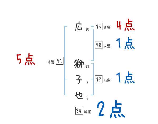 広獅子也さんの画数の鑑定結果