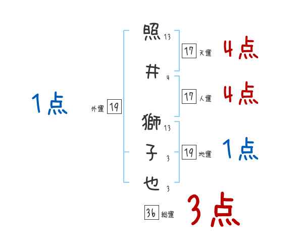 照井獅子也さんの画数の鑑定結果