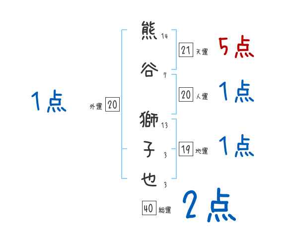 熊谷獅子也さんの画数の鑑定結果