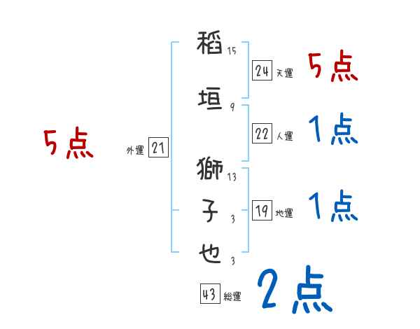 外運![]() | 稻垣獅子也さんの外運は21画の5つ星!統率力がある。独立し成功する。名誉を手に入れる。 生活面を象徴する運勢です。外部から受ける影響力を表し、結婚運、家庭運や職場、環境への順応性を表します。 |