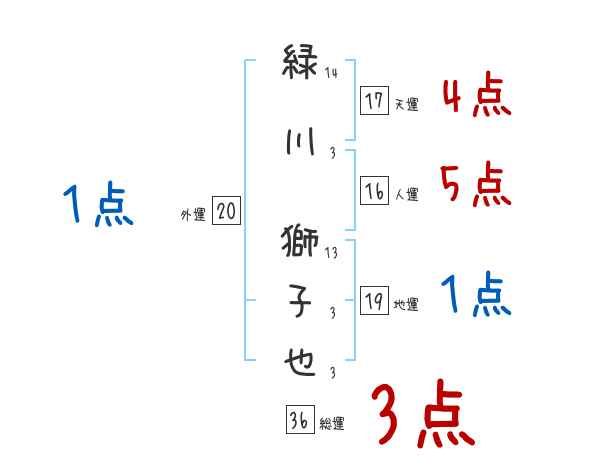 総運![]() | 緑川獅子也さんの総運は36画の3つ星!先見性が豊かです。多少神経質で苦労することも。 あなたの人生を表す1番重要な運勢です。生涯を通じて影響する総合運となり、主に50歳以降の晩年期に影響を及ぼします。 |