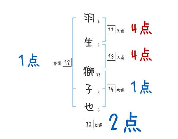 羽生獅子也さんの画数の鑑定結果