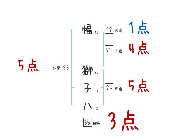 幅獅子八さんの画数の鑑定結果