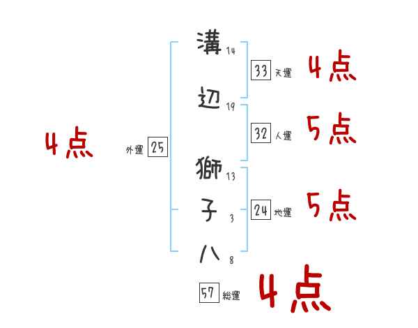 溝辺獅子八さんの画数の鑑定結果