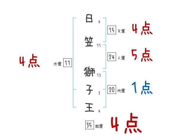 日笠獅子王さんの画数の鑑定結果