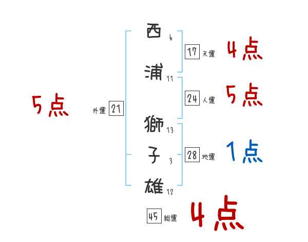 西浦獅子雄さんの画数の鑑定結果