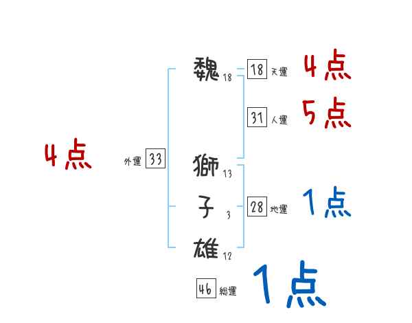 魏獅子雄さんの画数の鑑定結果
