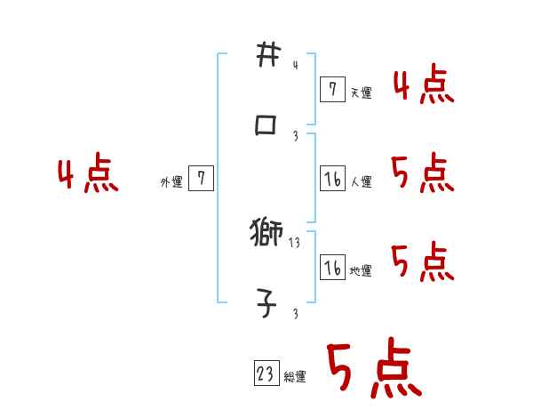 井口獅子さんの画数の鑑定結果