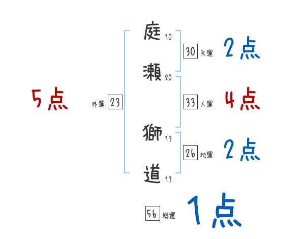 庭瀬獅道さんの画数の鑑定結果