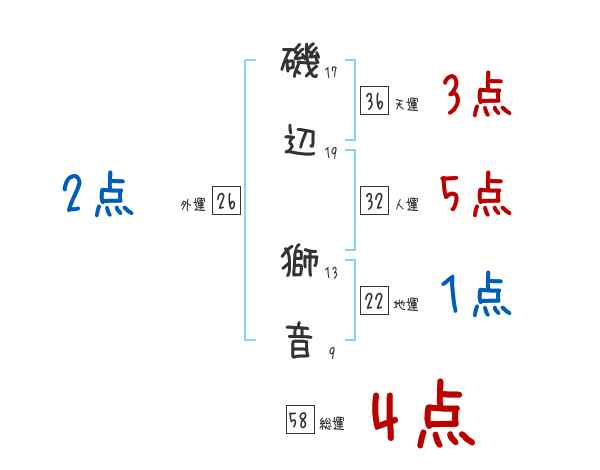 磯辺獅音さんの画数の鑑定結果