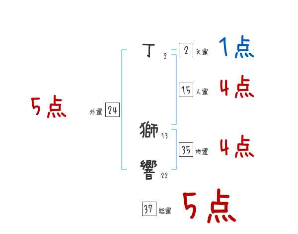 丁獅響さんの画数の鑑定結果