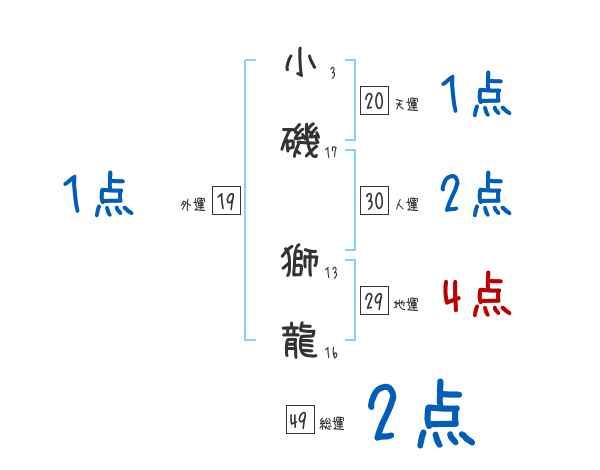 小磯獅龍さんの画数の鑑定結果