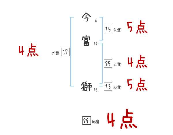 今富獅さんの画数の鑑定結果