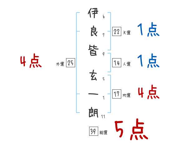 伊良皆玄一朗さんの画数の鑑定結果