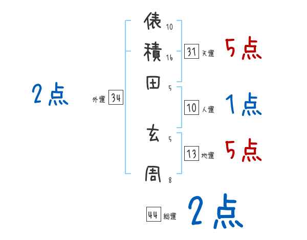 総運![]() | 俵積田玄周さんの総運は44画の2つ星!誠実で慎重な性格。物事を考えすぎないように注意しましょう。 あなたの人生を表す1番重要な運勢です。生涯を通じて影響する総合運となり、主に50歳以降の晩年期に影響を及ぼします。 |