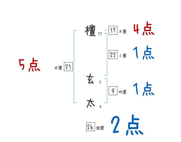 檀玄太さんの画数の鑑定結果