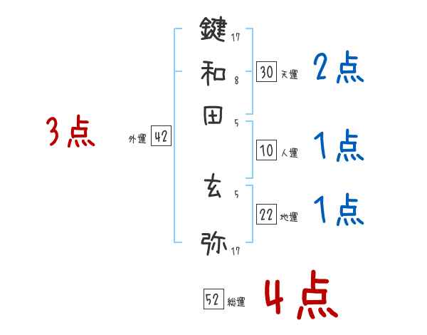鍵和田玄弥さんの画数の鑑定結果