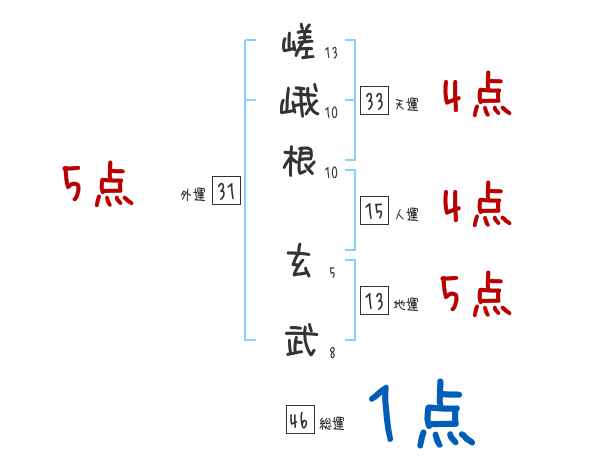 天運![]() | 嵯峨根玄武さんの天運は33画の4つ星!権力志向でプライドが高い。勇気があり運を切り開き成功する。 家系が持つ宿命的な運勢を表します。祖先から受け継いだ苗字ですので自分の力が及びません。家柄を象徴します。 |
