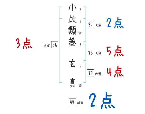 外運![]() | 小比類巻玄真さんの外運は36画の3つ星!先見性が豊かです。多少神経質で苦労することも。 生活面を象徴する運勢です。外部から受ける影響力を表し、結婚運、家庭運や職場、環境への順応性を表します。 |