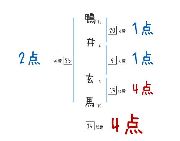 鴨井玄馬さんの画数の鑑定結果