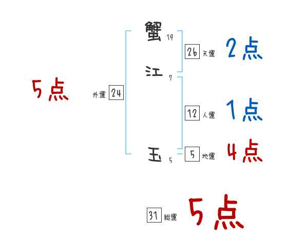 蟹江玉さんの画数の鑑定結果