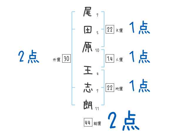 尾田原王志朗さんの画数の鑑定結果