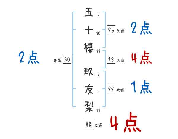 外運![]() | 五十棲玖友梨さんの外運は30画の2つ星!浮き沈みの激しさに注意しましょう。 生活面を象徴する運勢です。外部から受ける影響力を表し、結婚運、家庭運や職場、環境への順応性を表します。 |