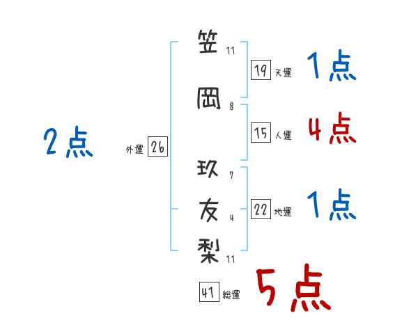 笠岡玖友梨さんの画数の鑑定結果