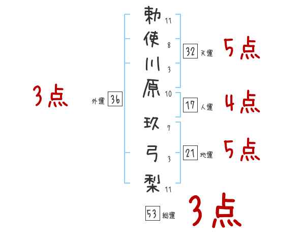 勅使川原玖弓梨さんの画数の鑑定結果