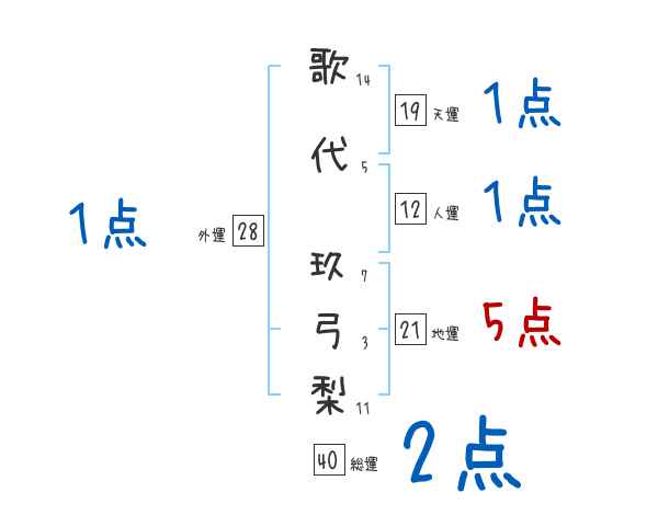 地運![]() | 歌代玖弓梨さんの地運は21画の5つ星!統率力がある。独立し成功する。名誉を手に入れる。 個性を表す基礎的な運勢です。性格形成や対人関係、行動力など家庭環境に影響されます。主に誕生してから20歳くらいまでの若年期の運勢を表します。 |