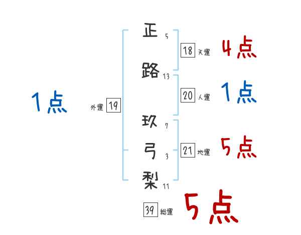 外運![]() | 正路玖弓梨さんの外運は19画の1つ星!優れた才能を持ちますが、協調性が足りないことも。周りの人と協力する事を意識しましょう。 生活面を象徴する運勢です。外部から受ける影響力を表し、結婚運、家庭運や職場、環境への順応性を表します。 |