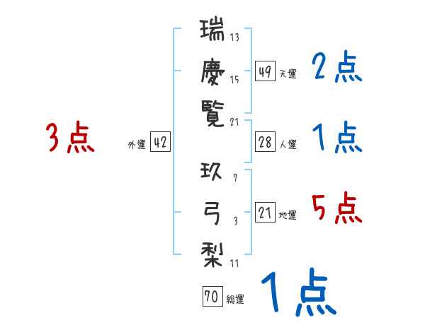 瑞慶覧玖弓梨さんの画数の鑑定結果