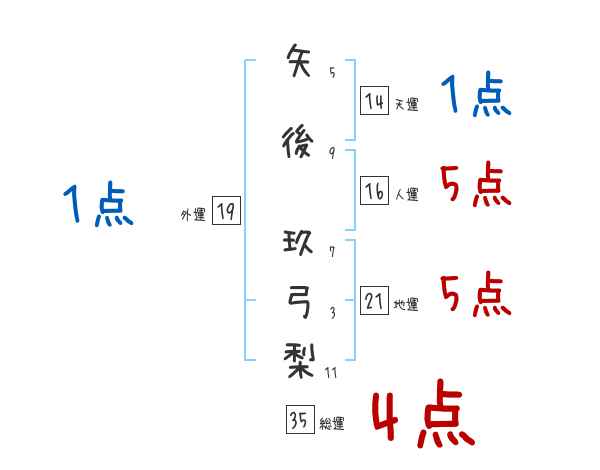 矢後玖弓梨さんの画数の鑑定結果
