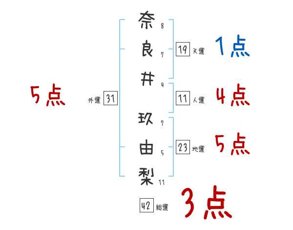天運![]() | 奈良井玖由梨さんの天運は19画の1つ星!優れた才能を持ちますが、協調性が足りないことも。周りの人と協力する事を意識しましょう。 家系が持つ宿命的な運勢を表します。祖先から受け継いだ苗字ですので自分の力が及びません。家柄を象徴します。 |