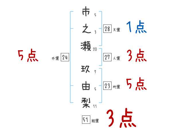 市之瀬玖由梨さんの画数の鑑定結果