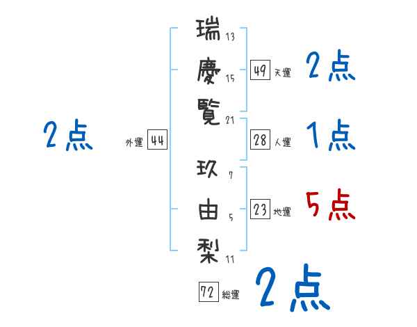 瑞慶覧玖由梨さんの画数の鑑定結果
