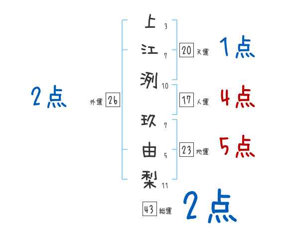 外運![]() | 上江洌玖由梨さんの外運は26画の2つ星!波瀾万丈かも。信頼できる人を大事にしましょう。 生活面を象徴する運勢です。外部から受ける影響力を表し、結婚運、家庭運や職場、環境への順応性を表します。 |