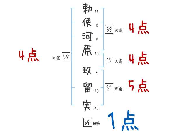 外運![]() | 勅使河原玖留実さんの外運は52画の4つ星!先見性と独創性に優れ考える力がある。強運の持ち主。 生活面を象徴する運勢です。外部から受ける影響力を表し、結婚運、家庭運や職場、環境への順応性を表します。 |
