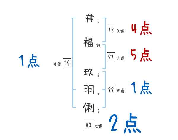 外運![]() | 井福玖羽俐さんの外運は19画の1つ星!優れた才能を持ちますが、協調性が足りないことも。周りの人と協力する事を意識しましょう。 生活面を象徴する運勢です。外部から受ける影響力を表し、結婚運、家庭運や職場、環境への順応性を表します。 |