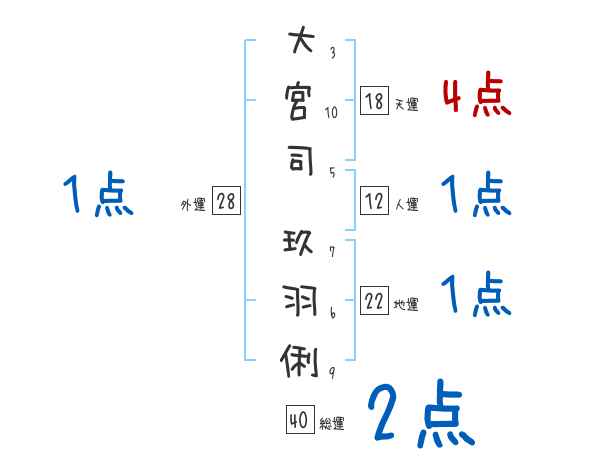 家系が持つ宿命的な運勢を表します。祖先から受け継いだ苗字ですので自分の力が及びません。家柄を象徴します。